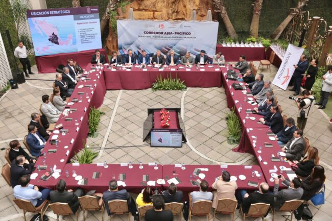 El gobernador Alfredo Ramírez Bedolla destacó que “Michoacán tiene condiciones logísticas y geográficas para atraer inversión, ya que cuenta con el segundo puerto más grande del país e infraestructura carretera y ferroviaria que conecta con otros estados del litoral Pacífico, lo que lo hace un referente para la importación y exportación frente al T-MEC”.